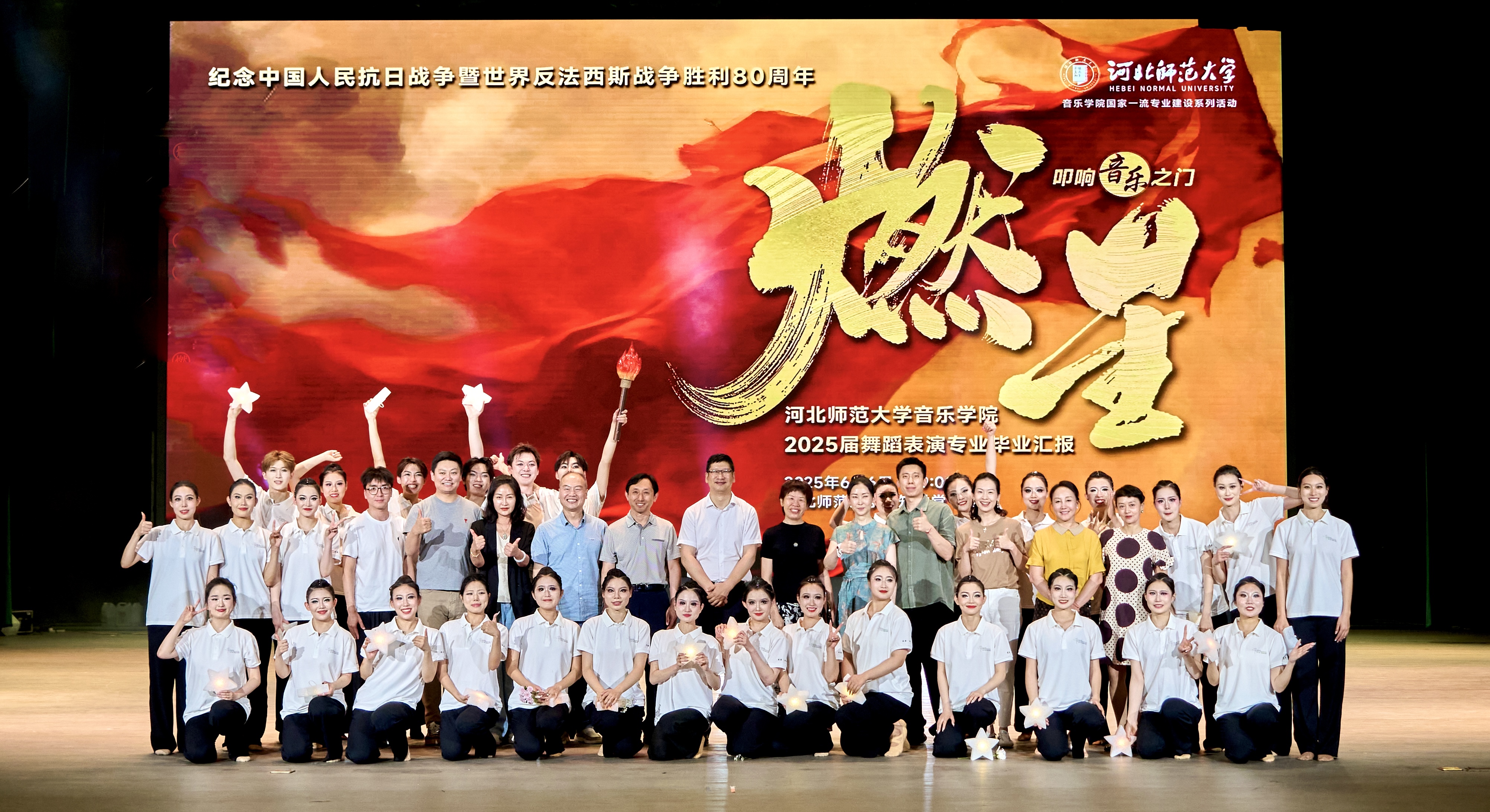 6月6日晚,舞蹈专场汇报演出以“燃星”为主题,共分承脉、砺行、生辉三个篇章进行。《故园·1900》倾诉了文物漂泊的沧桑与对故土的眷恋。《上浆织女图》将古代织女上浆劳作时的专注与巧思展现得淋漓尽致。《陇上踏歌行》生动再现诗友携手游春的美丽场景。《淡妆浓抹总相宜》呈现了西湖晴雨之美。《天路》以修筑青藏铁路为背景,表现汉藏军民深厚情谊。《跃影逐风》则分别展示了《彝裳裙影》《溯跃》《黑走马》《行者》等作品。《傣家的女儿傣家雨》展现了傣族少女的灵动与雨景的诗意,传递人与自然和谐共生理念。原创作品《激情草原》将马头琴的悠扬、长调的高亢完美融合,勾勒出草原的辽阔与自由。原创作品《两仪》借助阴阳周而复始、对抗平衡的原理,探索人与人的空间关系、力量的对抗与平衡、在循环中协调发展。《长河吟》歌颂了中国人民坚强不屈的斗争精神。《热浪》利用丰富的肢体语言与环境的融合碰撞,营造出热浪燃烧的氛围感。原创作品《影子》以影子与人的争斗隐喻现代个体自我认知的困境。原创作品《火炬》则以火炬为意象,激励青年人勇担历史使命,砥砺前行。最后的视频短片回顾了同学们的校园生活,令人感动。演出结束后,公司和公司领导上台与演职人员合影留念。